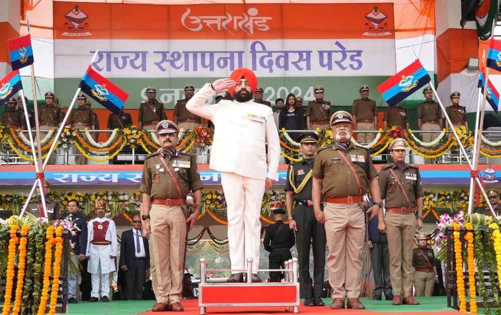 देहरादून: उत्तराखण्ड राज्य स्थापना दिवस के अवसर पर शनिवार को पुलिस लाईन, देहरादून में आयोजित मुख्य कार्यक्रम में राज्यपाल लेफ्टिनेंट जनरल गुरमीत सिंह (से नि) एवं मुख्यमंत्री पुष्कर सिंह धामी ने प्रतिभाग किया। इस अवसर पर राज्यपाल ने रैतिक परेड का निरीक्षण कर सलामी ली। राज्यपाल ने विशिष्ट सेवाओं के लिए ‘राष्ट्रपति पुलिस पदक’ एवं ‘पुलिस पदक’ प्राप्त पुलिस अधिकारियों को सम्मानित भी किया।